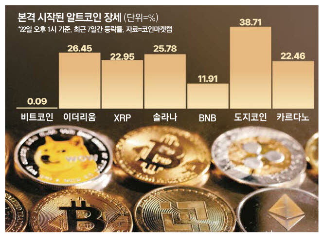 이후 상승세가 솔라나로 번지면서 알트코인 시장 전체가 들썩이고 있습니다.