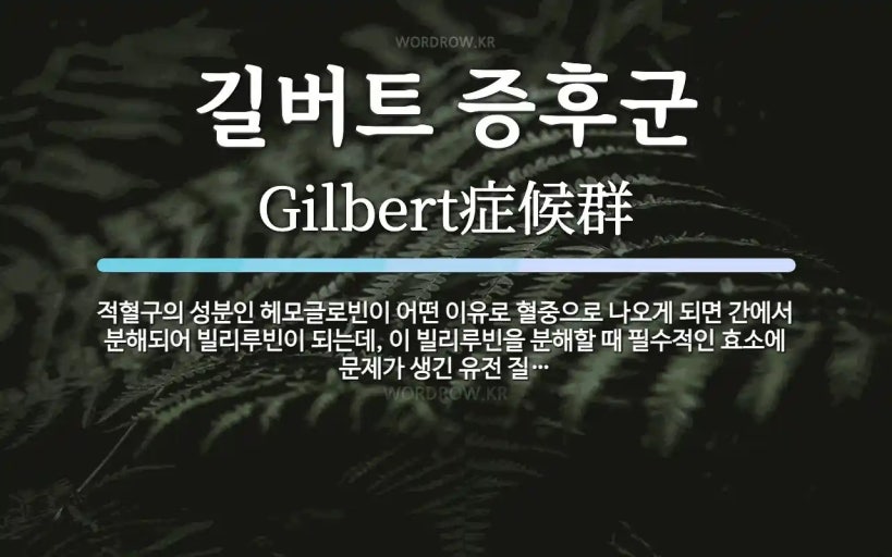 길버트 증후군은 비교적 흔한 유전적 질환으로, 간세포 내 **빌리루빈 포합 효소(UGT1A1)**의 활성이 정상보다 떨어져 비포합형 빌리루빈이 잘 처리되지 못하는 상태를 말합니다.