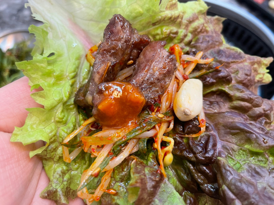 특히 마늘양념소고기가 별미! 기본 갈비살도 좋았지만, 이 집의 마늘양념은 자극적이지 않으면서 깊은 맛이 느껴졌어요.